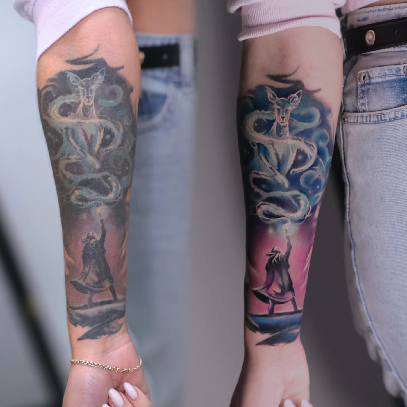 Перекрытие и коррекция или исправление старых татуировок и шрамов.