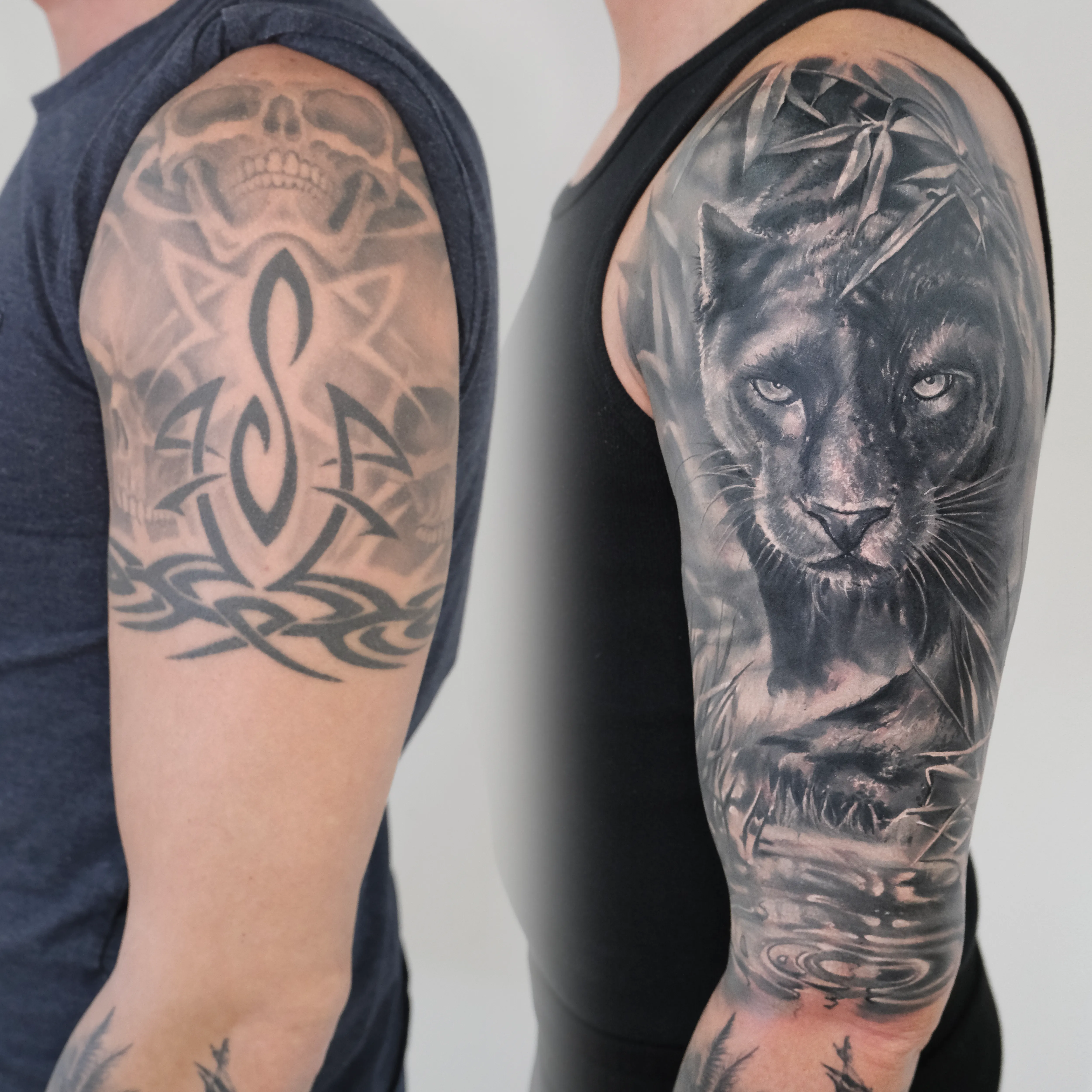 Перекрытие и коррекция или исправление старых татуировок и шрамов.