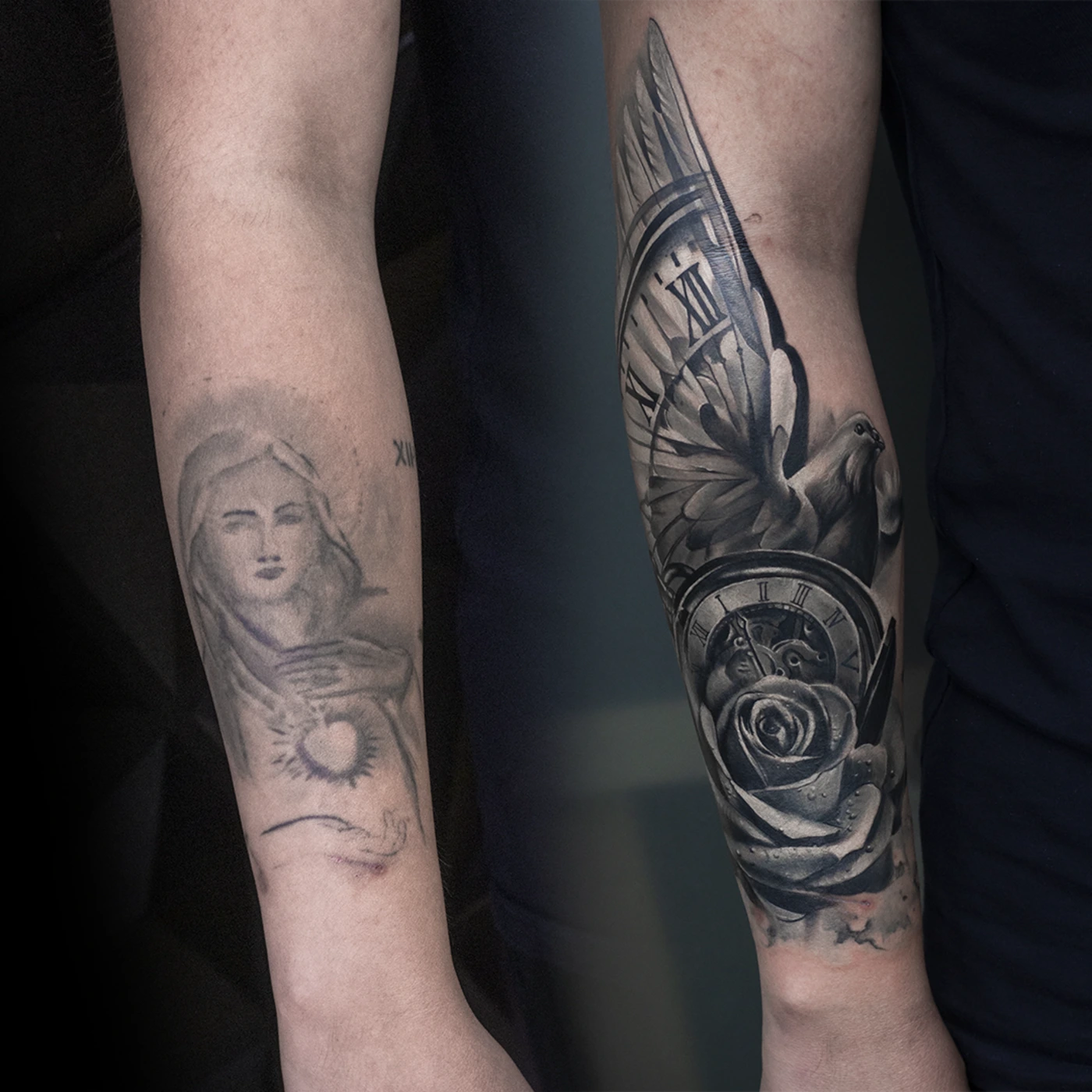 - специализируюсь на реалистичных черно-белых и цветных татуировках, стилизованном реализме, акварели, перекрытиях и исправлениях старых татуировок и шрамов;